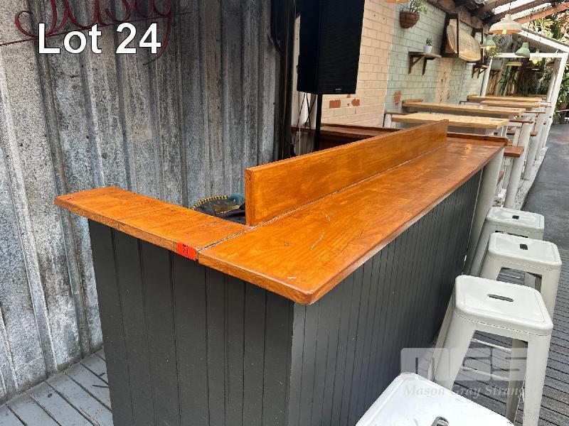 OREGON TIMBER BAR TOPS, 4 SECTIONS 1 @ 1820 x 290 x 30mm 5 x ASSORTED SHORT LENGTHS