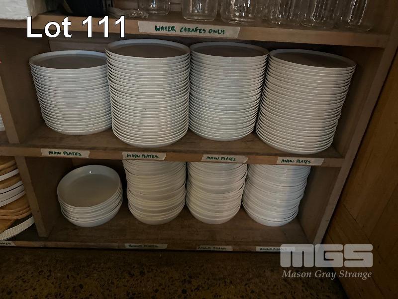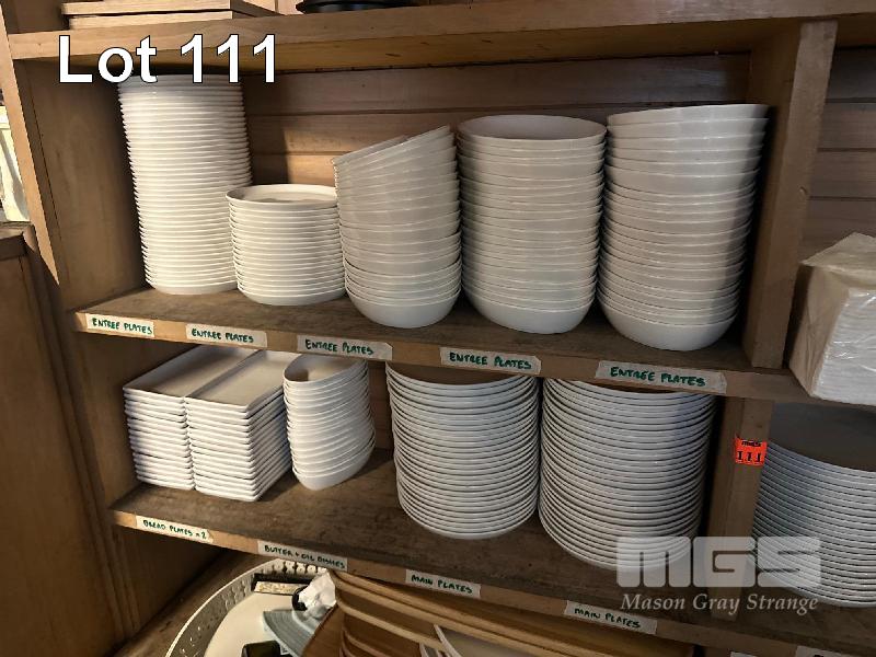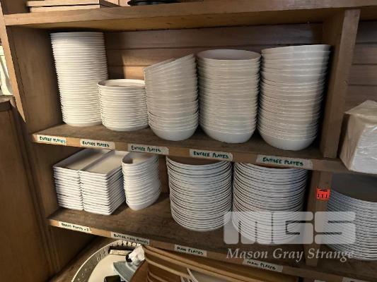 DINNERWARE INCLUDING APPROXIMATELY 150 x WHITE DINNER PLATES, 70 x ROUND DISHES 60 x OVAL ENTREE PLATES, 50 x ROUND ENTREE PLATES & 30 x RECTANGULAR BREAD PLATES