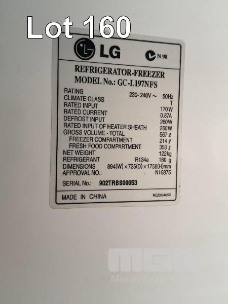 LG 2 DOOR FRIDGE/FREEZER, MOD: GC-L197NFS, 567L CAP, WITH ICE CUBVE & WATER DISPENSER, 240V