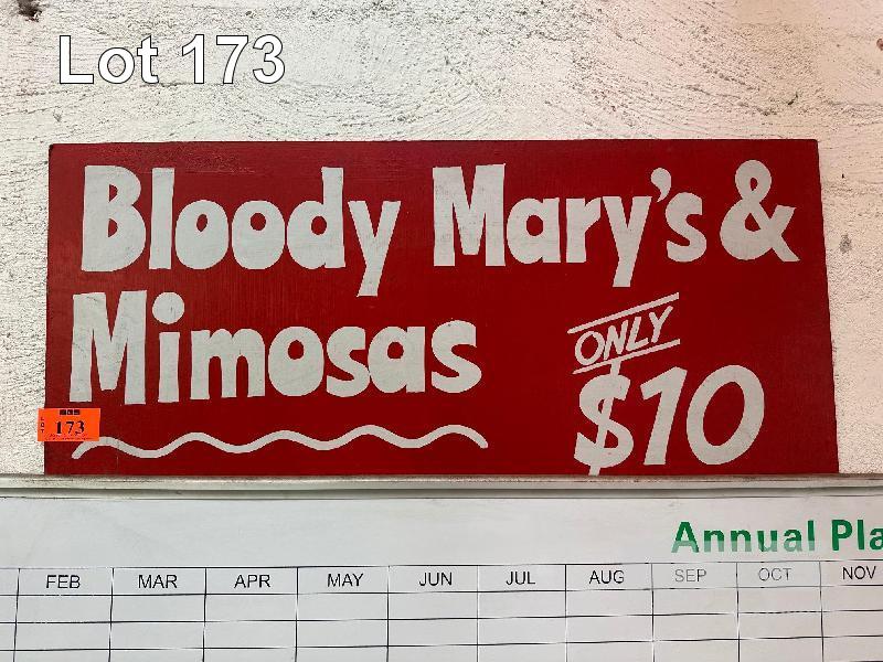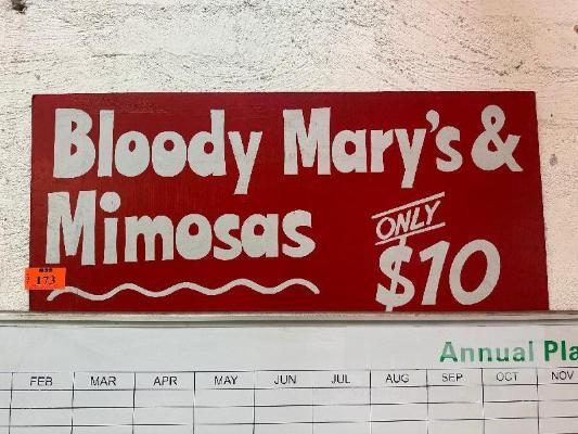 BLOODY MARYS & MIMOSAS $10 HAND PAINTED SIGN, 700 x 300mm