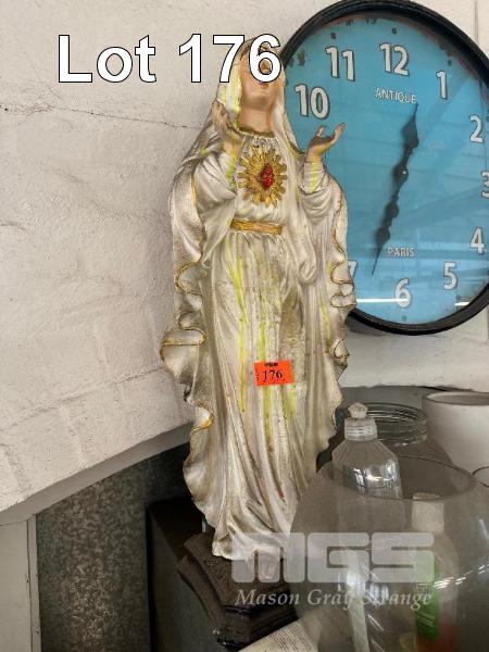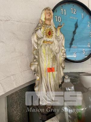 MARY STATUE, 700mm (H) & ANTIQUE PARIS CLOCK, 600mm (D)