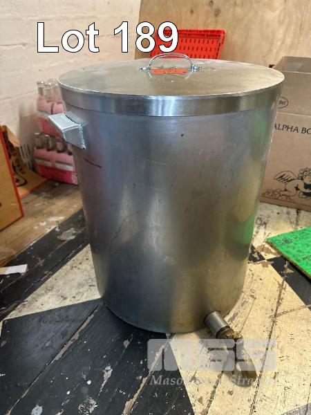 LARGE STAINLESS STEEL POT WITH LID & DRAIN TAP, 400 x 510mm (H)