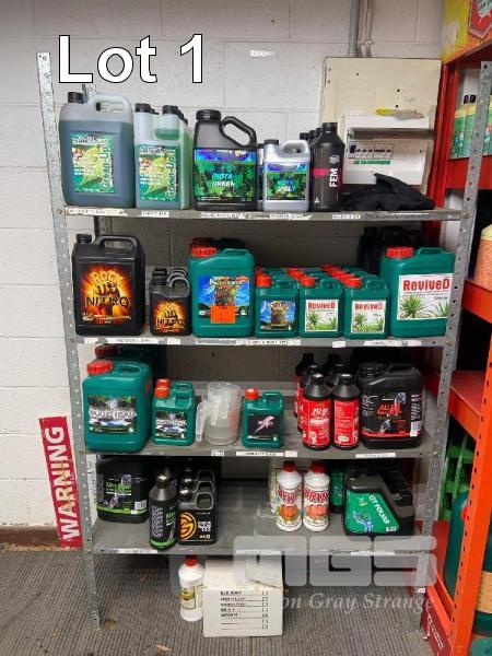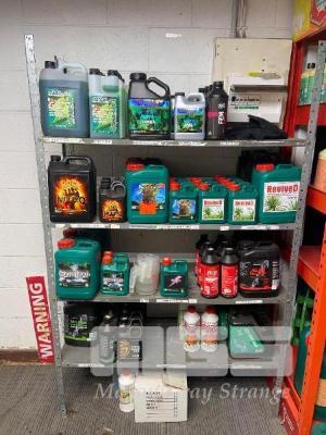 GROTEK NITROGEN SUPPLEMENT, ACCENT SOLUTION GREEN UP, ROCK NITRO & CALCIUM BOOSTER, NUTRIOOST, REVIVED, ROD REPAIR, BRIX T, ETC 1-5 LITRES, 65 TOTAL APPROX CONTENTS 4 x SHELVES