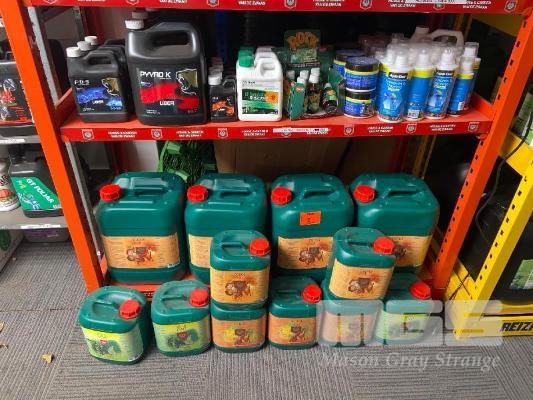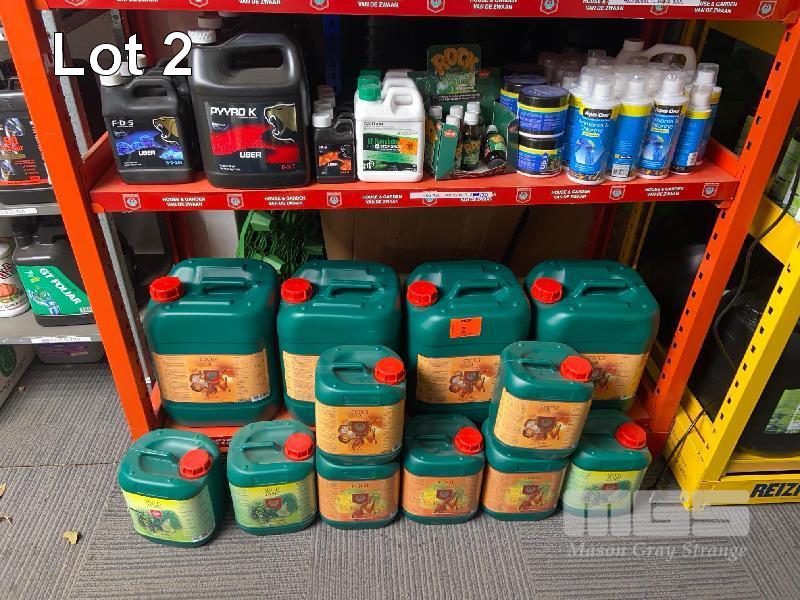 3 x COCOS A, 5 & 20 LITRE 3 x COCOS B, 5 LITRE & 20 LITRE 3 x BUD XL, 5 LITRE & 3 x MULTI ZYME, 5 LITRE CONTENTS BOTTOM SHELF