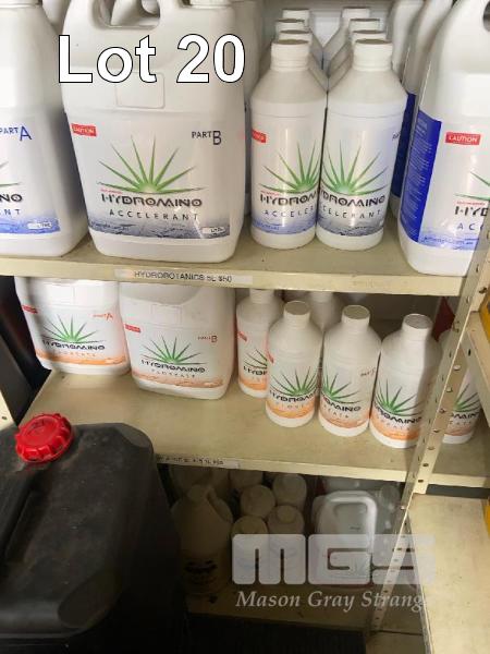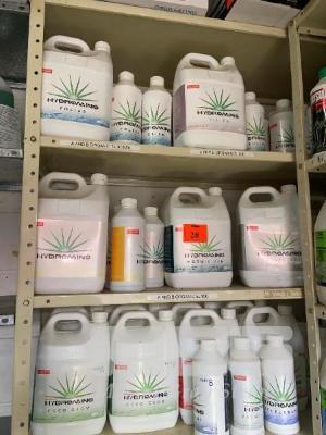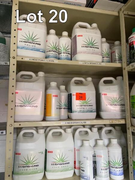 HYDROMINO FOLIAR, WORMALIZER, COCO GROW ACCELERANT, ETC, 1-5 20 LITRE, 100 TOTAL CONTENTS RACK