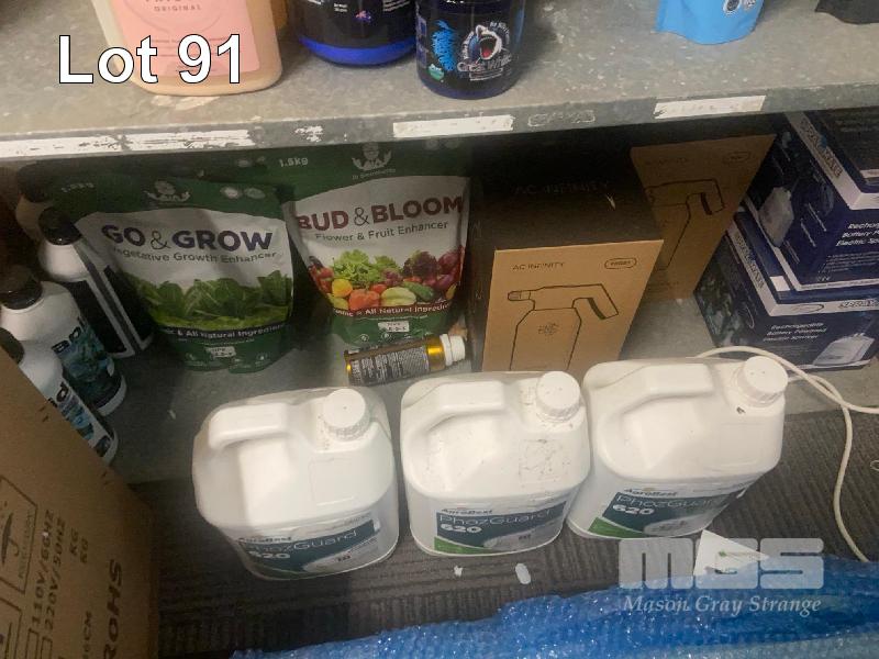 VARIOUS PLANT & ROOT ENHANCER, PHOZ GUARD, 3 x 5 LITRE SPRAY BOTTLES CONTENTS RACK