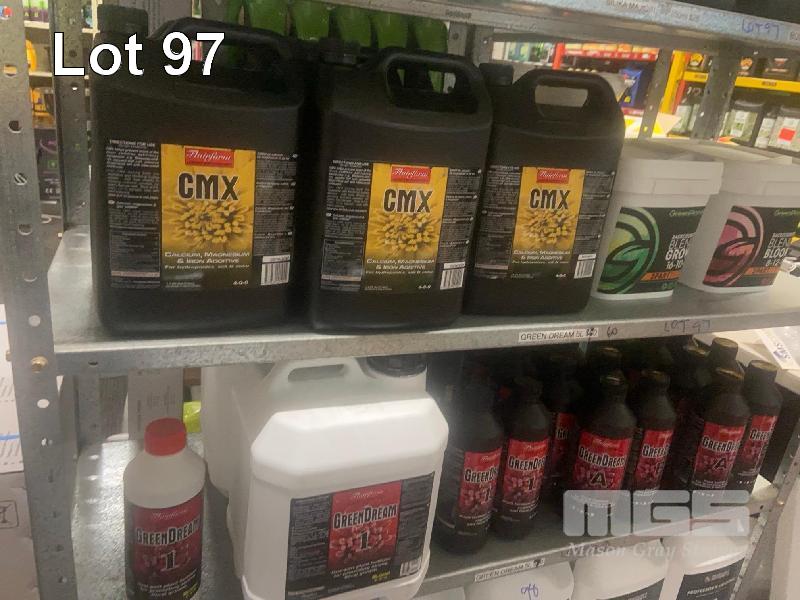 SILICA MAJIC, BUD STORM, GRO STORM, CMX, GREEN DREAM, GREEN PLANET BLEND GROW, 100ml-5 LITRE, 70 CONTAINERS APPROX CONTENTS SHELVES