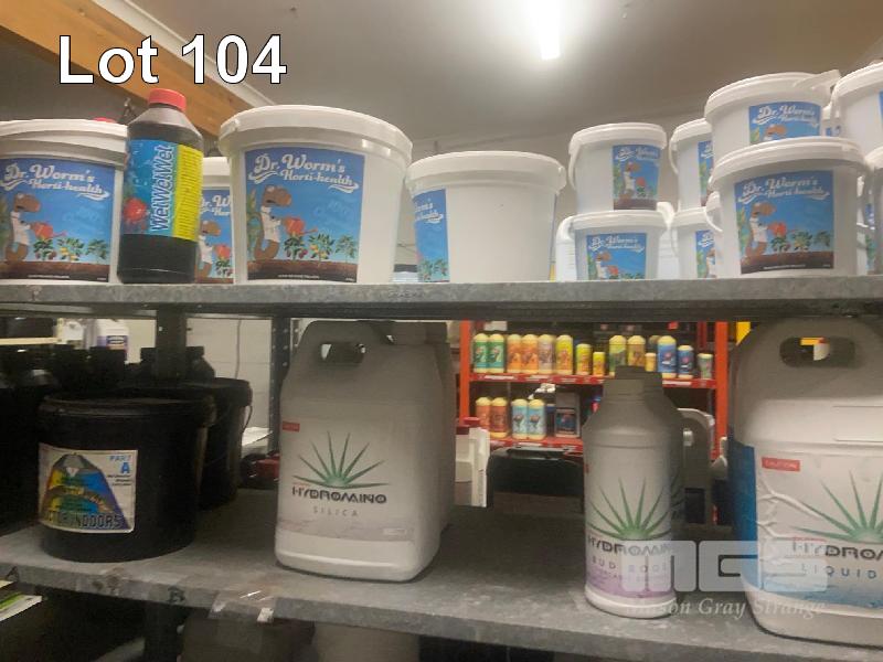ASSORTED CONTAINERS POTASSIUM PHOSPHATE, POTASSIUM NITRATE, HYDROMINO LIQUID MAG, HYDROMINO SILICA, HYDROMINO BUD BOOST & DR WOMMS HORTI HEALTH 45 (APPROX) x CONTAINERS CONTENTS 1 x BAY