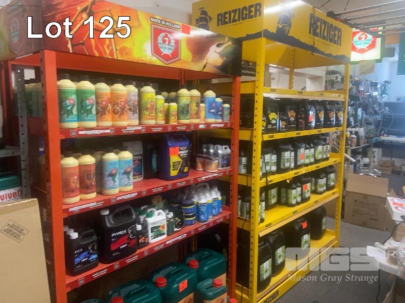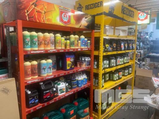2 x STEEL DISPLAY SHELF UNITS, ORANGE & YELLOW 1 @ 2100 x 1340 x 570mm & 1 @ 2450 x 1720 x 680mm