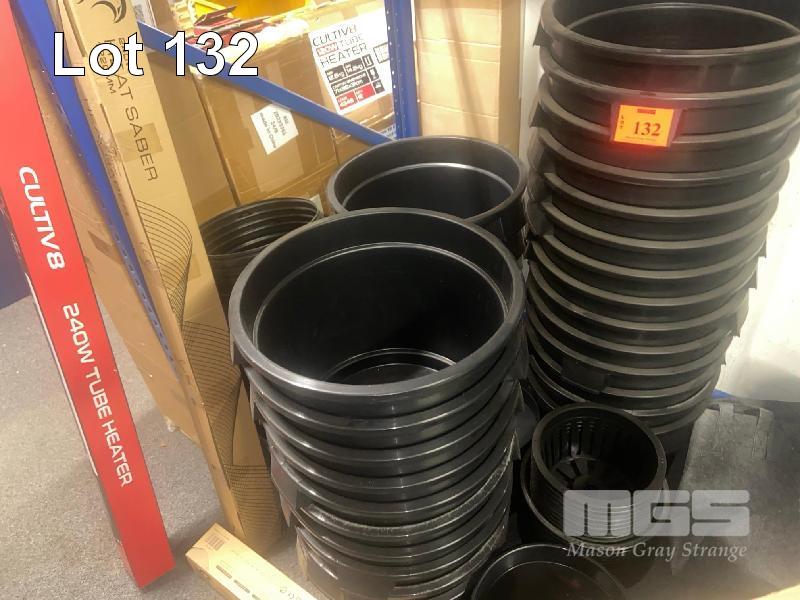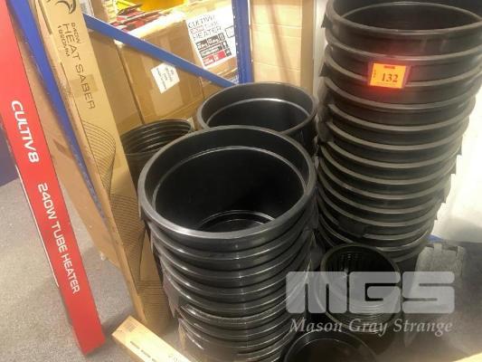 QUANTITY PLASTIC PLANT POTS, 500, 400, 300 & 200mm, TRAYS APPROX 200 PIECES