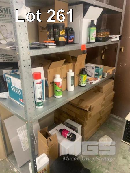 RACK & CONTENTS, INCLUDING 13 x LED LIGHTS, VARIOUS NUTRIENTS, LAMINATOR, TIMER & 2 x ADJUSTAWINGS