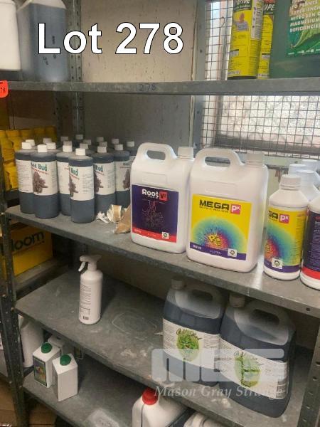 2 x RACKS & CONTENTS INCLUDING VARIOUS NUTRIENTS, MEGA, ADD BUD, BLOOM, ELITE, ETC