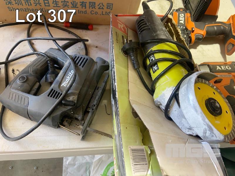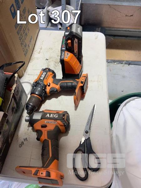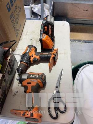 AEG CORDLESS TOOL SET, DRILL/DRIVER & CHARGER, ANGLE GRINDER & JIGSAW