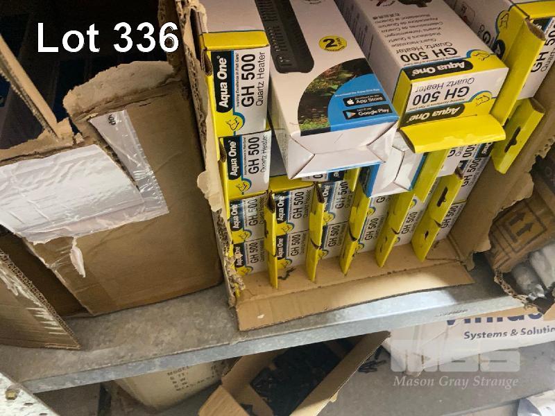 AQUA ONE HEATERS, HYDRO AXIS DIGITAL TIMERS, TENT COVERS, HOSE, ETC 3 x SHELVES