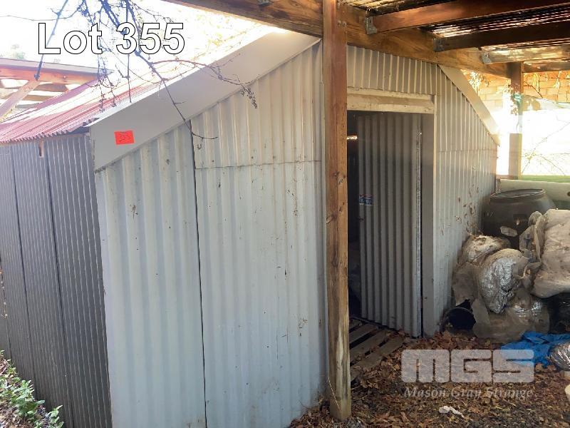 PITCH ROOF SHED, TIMBER FRAME, 3.6 x 3.6m APPROX & FLAT ROOF PERGOLA