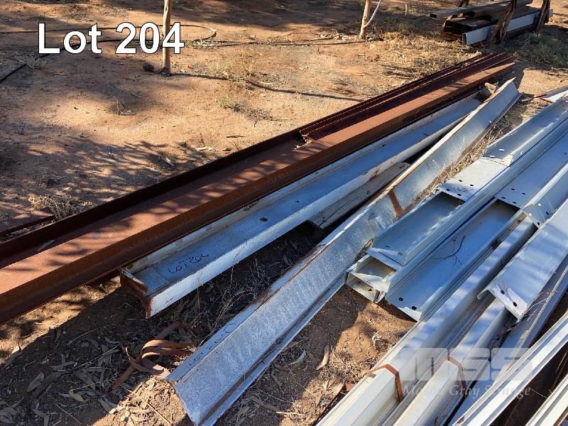 ASSORTED STEEL PIPE & BEAMS, RUSTY, ANGLE & 2 x STILLAGES RHS, GALV PIPE & ANGLE