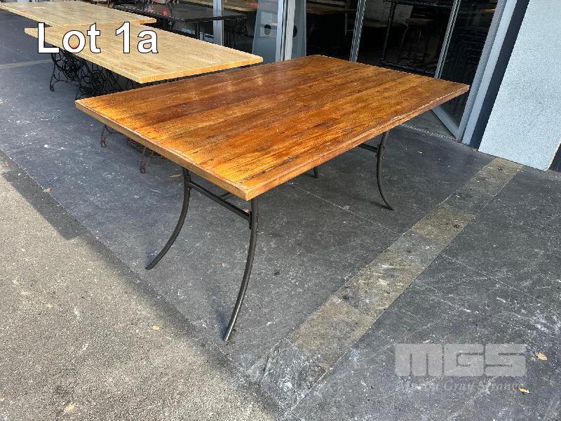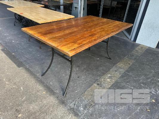 RUSTIC TIMBER DINING TABLE, STEEL FRAME