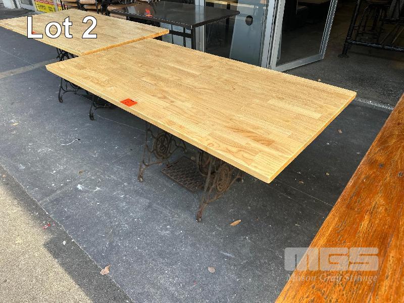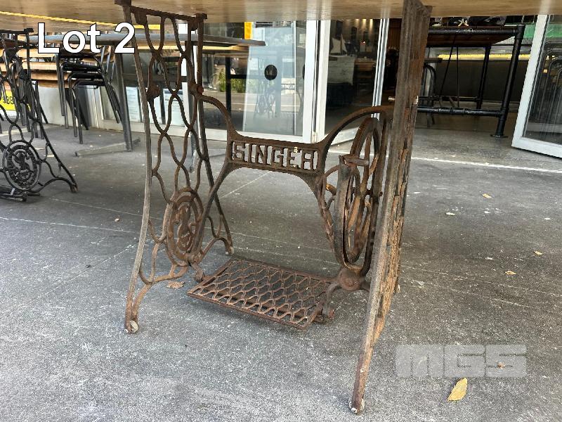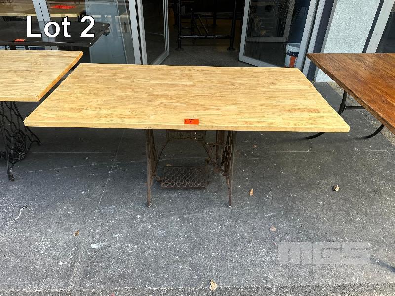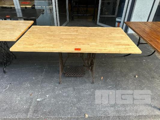 TIMBER TOP DINING TABLE, 1500 x 800mm WITH SINGER SEWING MACHINE BASE