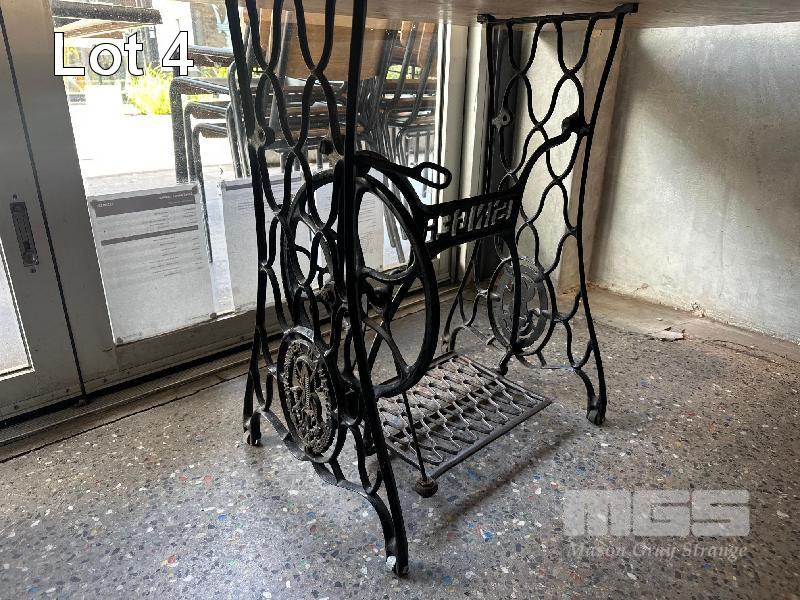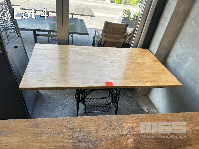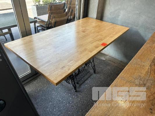 TIMBER TOP DINING TABLE, 1500 x 800mm WITH SINGER SEWING MACHINE BASE