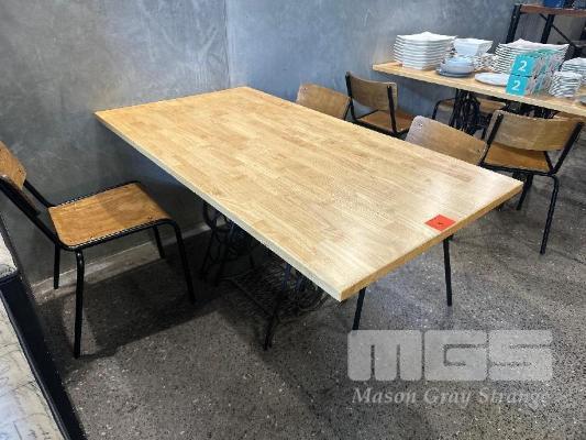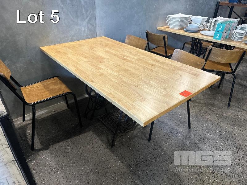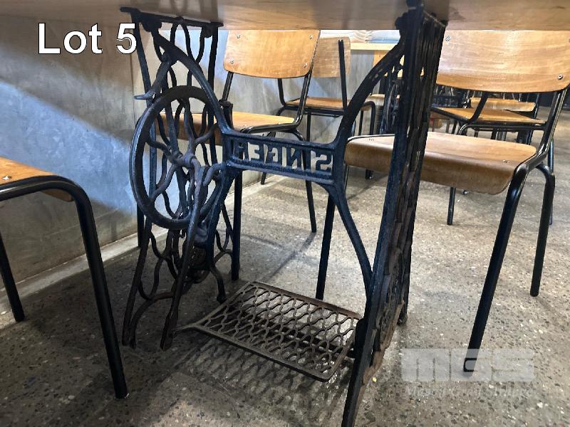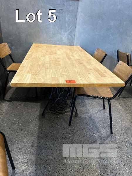 TIMBER TOP DINING TABLE, 1500 x 800mm WITH SINGER SEWING MACHINE BASE