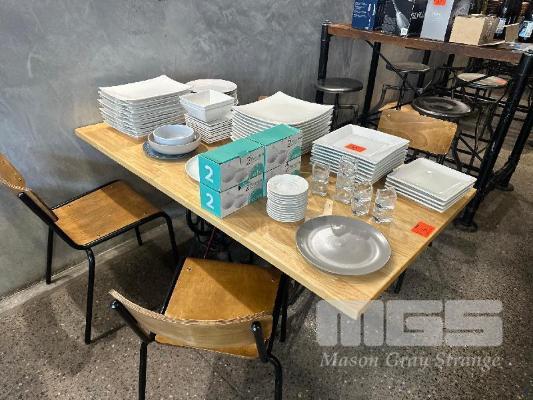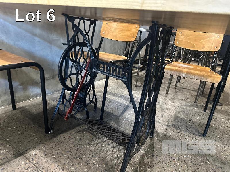 TIMBER TOP DINING TABLE, 1500 x 800mm WITH SINGER SEWING MACHINE BASE