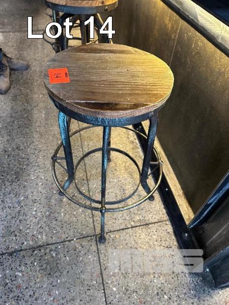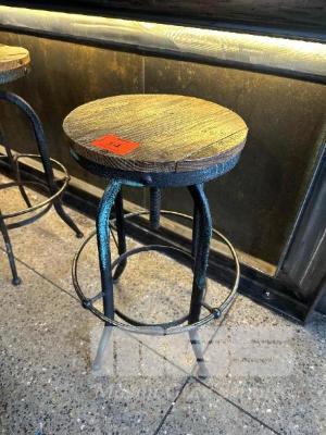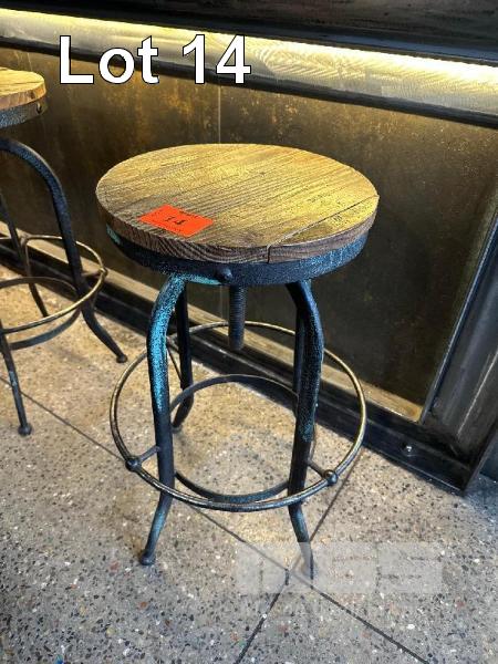 5 x RUSTIC BAR STOOLS STEEL FRAME, TIMBER TOP, ADJUSTABLE HEIGHT