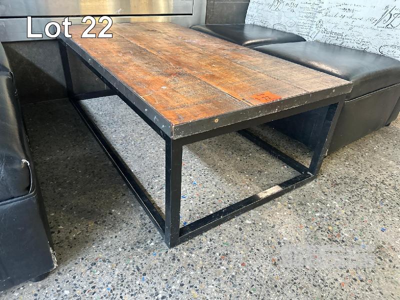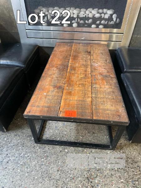 RUSTIC TIMBER TOP COFFEE TABLE, STEEL FRAME 1220 x 650 x 400mm (H)