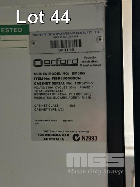 DISPLAY FRIDGE, ORFORD MOD BM36G 2 DOOR 1,000 LITRE CAPACITY 240V,10 AMP