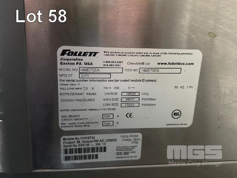 ICE MACHINE, FOLLETT HORIZON MOD: HME700A 240V, 10 AMP