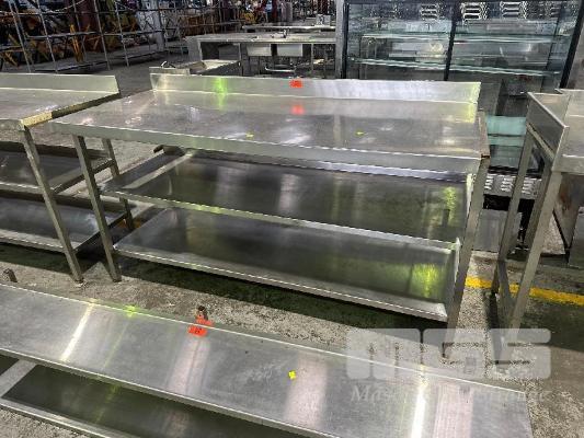 STAINLESS STEEL BENCH, 1750 x 750 x 900mm (H) WITH SPLASHBACK, 3 TIER