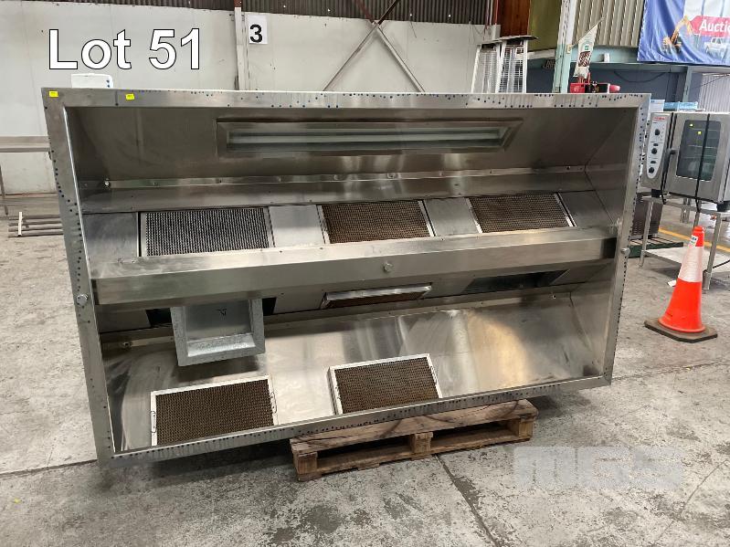 LARGE STAINLESS STEEL, CEILING MOUNT, EXHAUST CANOPY, ILLUMINATED 2350 x 1400 x 400mm
