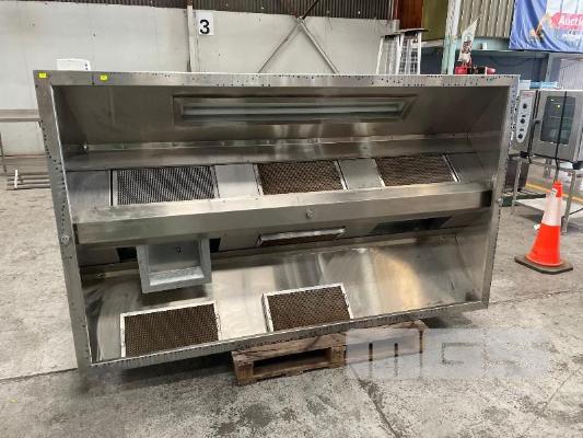 LARGE STAINLESS STEEL, CEILING MOUNT, EXHAUST CANOPY, ILLUMINATED 2350 x 1400 x 400mm