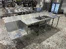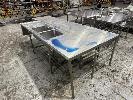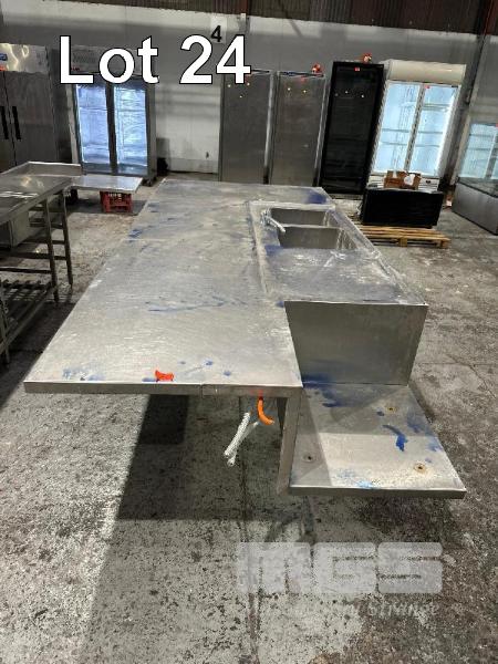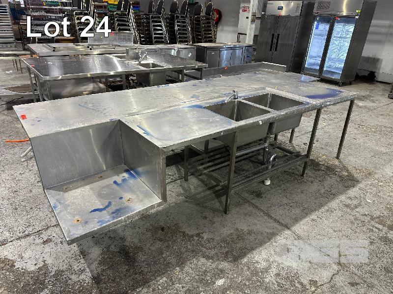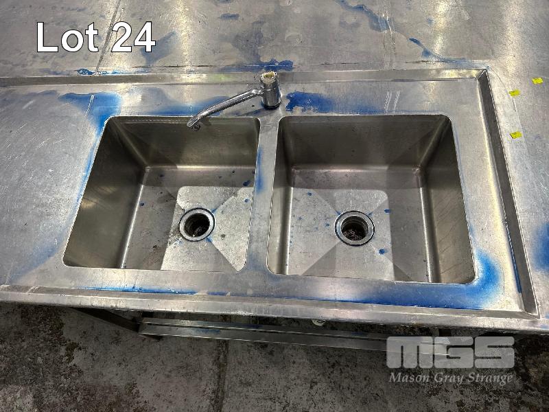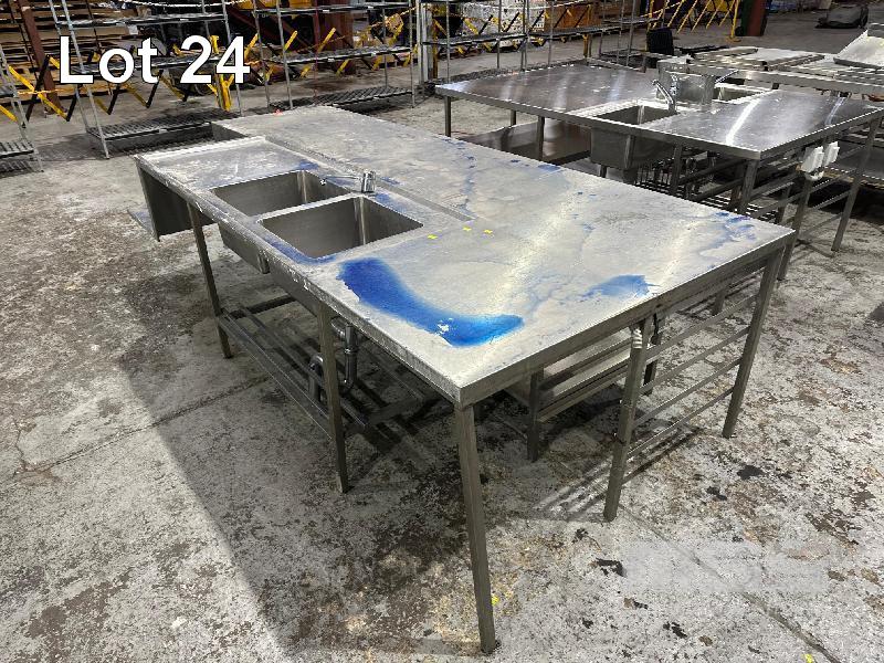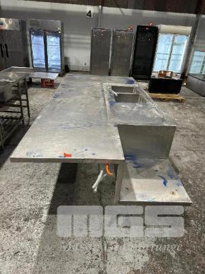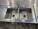STAINLESS STEEL CENTRE ISLAND BENCH, 3150 x 1400 x 910mm (H), TWIN BOWL