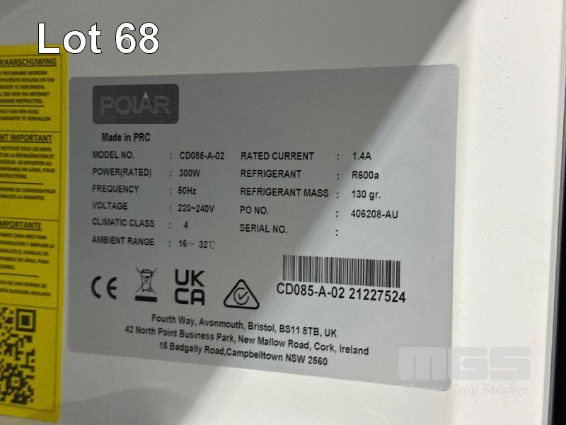 UPRIGHT CHEFS FREEZER, POLAR MOD: CD085-A-02 SINGLE DOOR 240V, 10 AMP