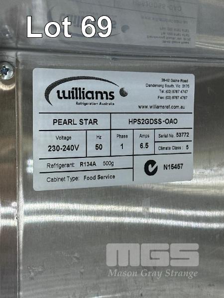 DISPLAY FREEZER, WILLIAMS MOD: PEARLSTAR 2 DOOR ILLUMINATED 1,000 LITRE CAPACITY APPROX 240V, 10 AMP