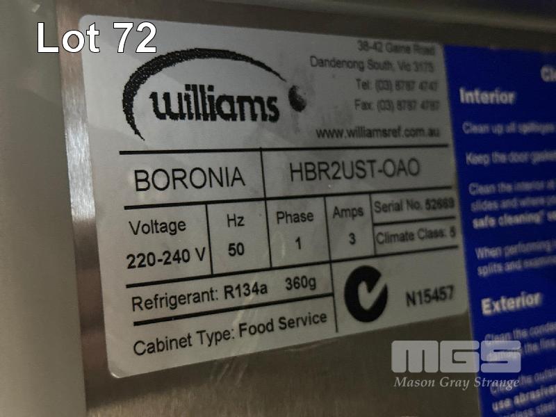 UNDERBENCH PREP FRIDGE, WILLIAMS MOD: HBRZUST-0A0 2 DOOR 240V, 10 AMP
