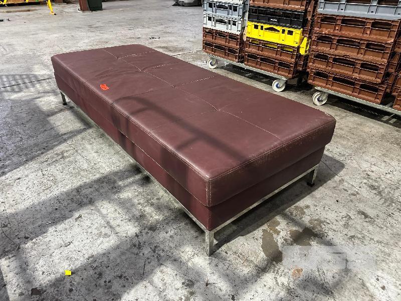SOFA BENCH, BURGUNDY VINYL TOP, CHROME BASE 2000 x 770mm