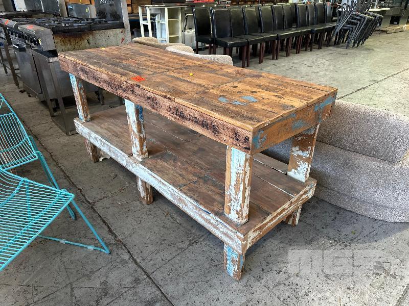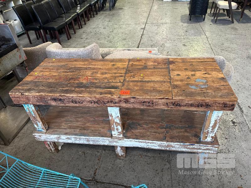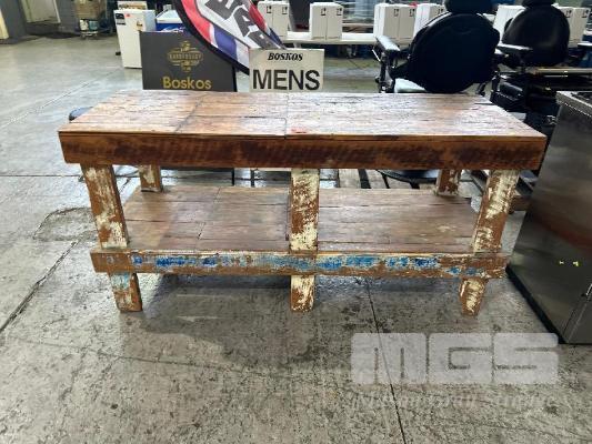 ANTIQUE TIMBER BENCH WITH DECORATIVE SUNKEN PENNIES, CIRCA 1940'S-1960'S 1670 x 610 x 840mm (H)