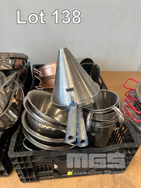 STRAINERS, MEASURING CUPS, 1 LITRE, WATER JUGS & CHAMPAGNE BUCKETS, 2 x BASKETS