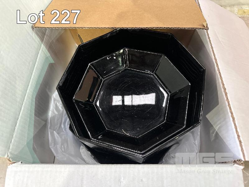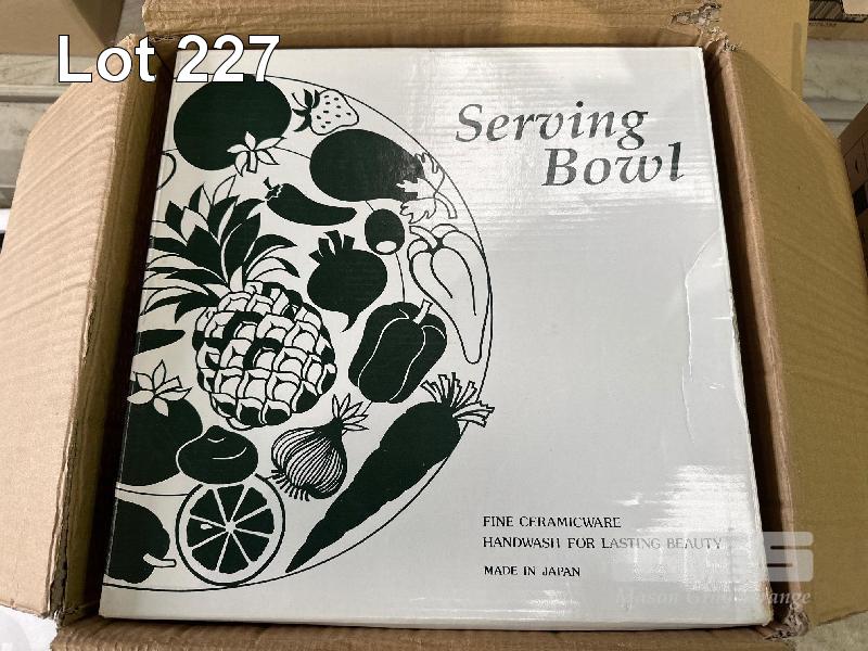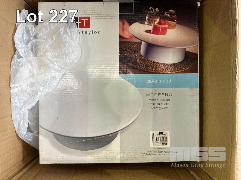 3 x CAKE STANDS, SERVING BOWL & 17 PIECE DINNER SET