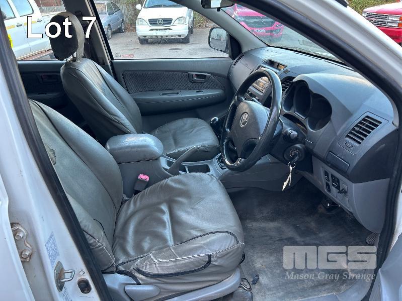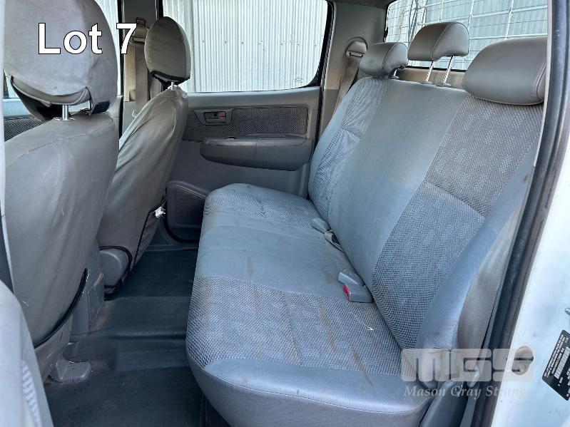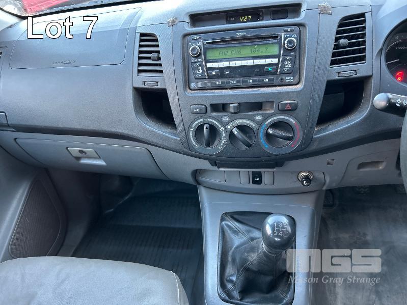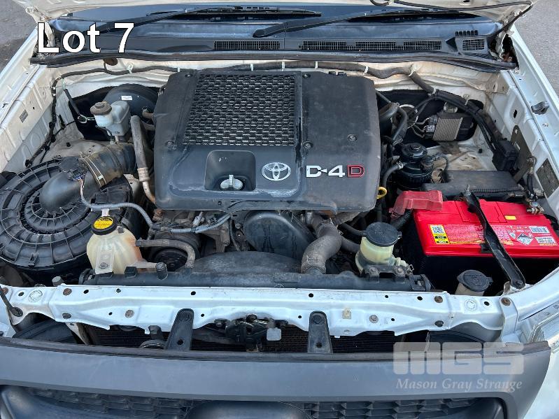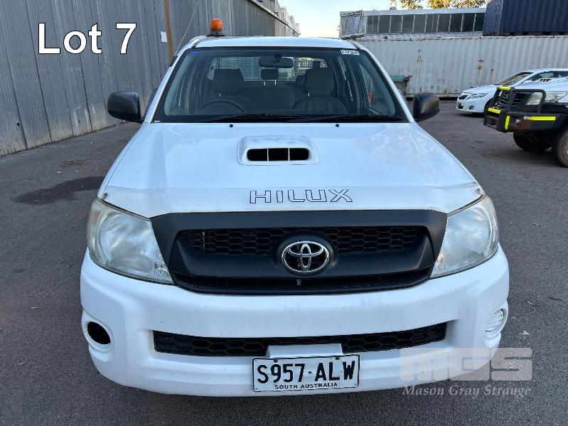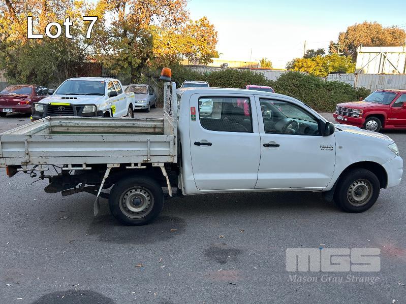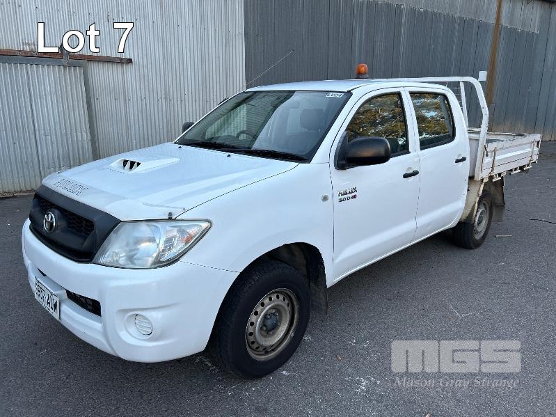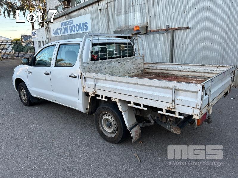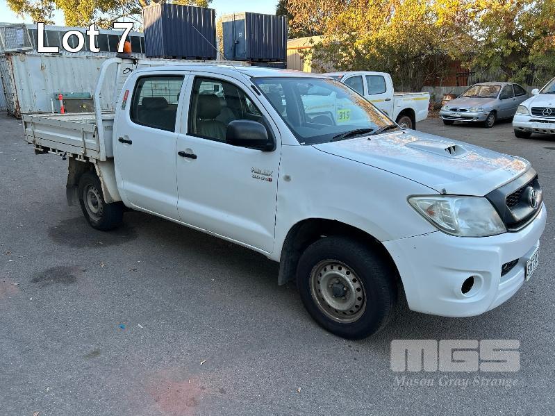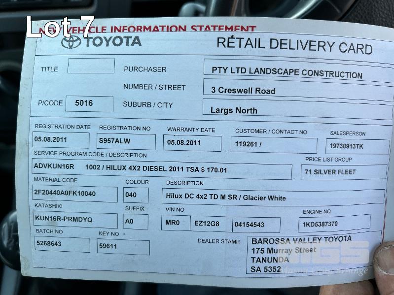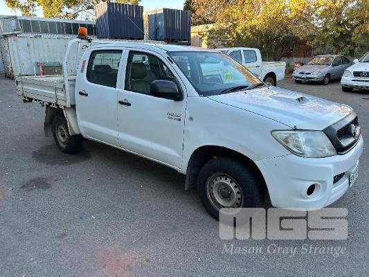 2011 TOYOTA HILUX KUN16R DUAL CAB TRAY TOP REG: S957 ALW (SA) VIN: MR0EZ12G804154543 ENG: 1KD5387370 ODO: 252,713kms SHOWING 3.0 LITRE TURBO DIESEL, MANUAL TRANSMISSION, WHITE DUCO, 4 DOORS, 5 SEAT, AIR BAG, AIR CON, CARGO BARRIER, CD PLAYER, CENTRAL LOCKING, IMMOBILISER, POWER STEERING, POWER WINDOWS, SPARE WHEEL, TOW BAR, STEEL TRAY KEY #13 (NO PAPERS, WITH 2 KEY/S, WITH OWNER'S MANUAL, WITH SERVICE BOOKS)