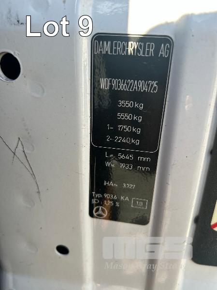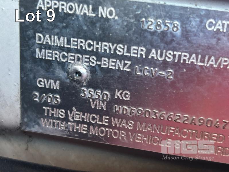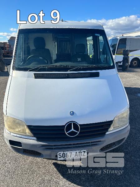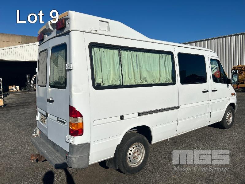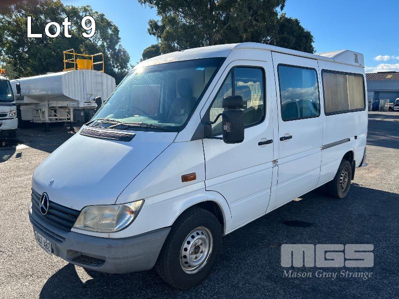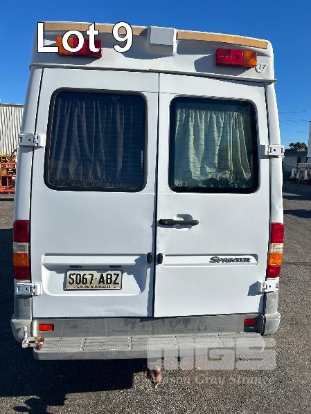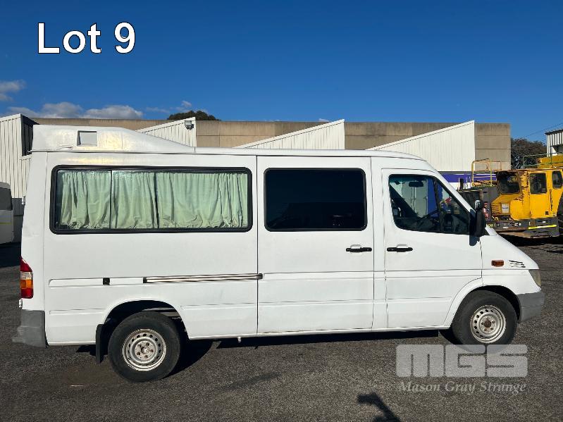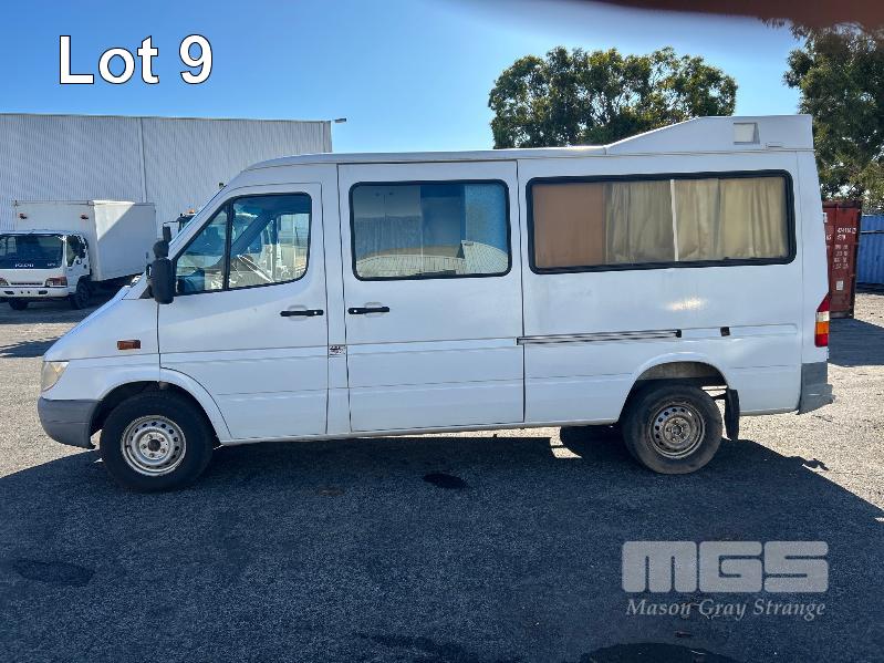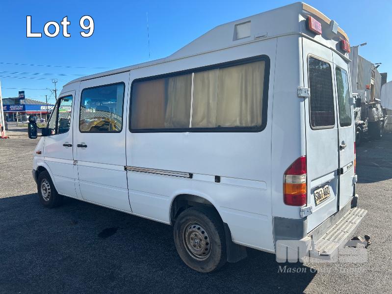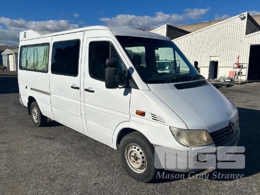 2003 MERCEDES BENZ SPRINTER LCV-2 CAMPER VAN REG: S067 ABZ VIN: WDF9036622904725 ENG: 61298150588025 ODO: 229,712kms SHOWING 5 CYLINDER TURBO DIESEL, AUTO SELECT, WHITE DUCO, 5 DOORS, 2 SEAT, AIR BAG, AIR CON, CENTRAL LOCKING, POWER STEERING, SUNROOF, TOW PACK FITTED WITH DOMETIC FRIDGE, 2 BURNER STOVE, SINK, STORAGE COMPARTMENTS & REAR SEATING KEY #19 (WITH PAPERS, WITH 1 KEY/S)