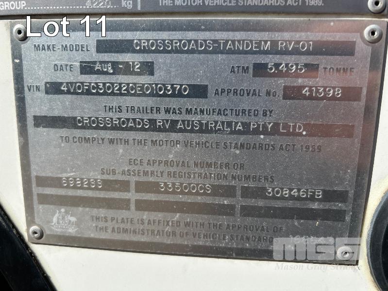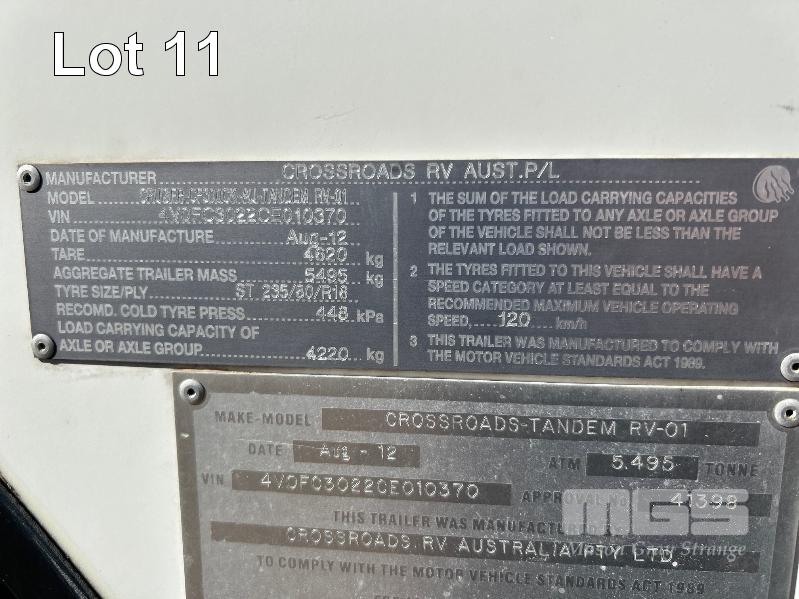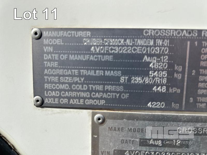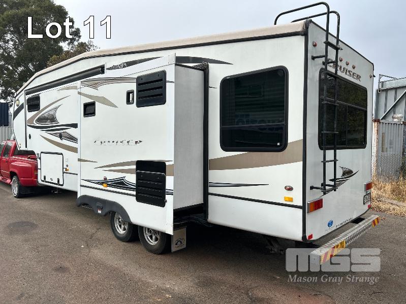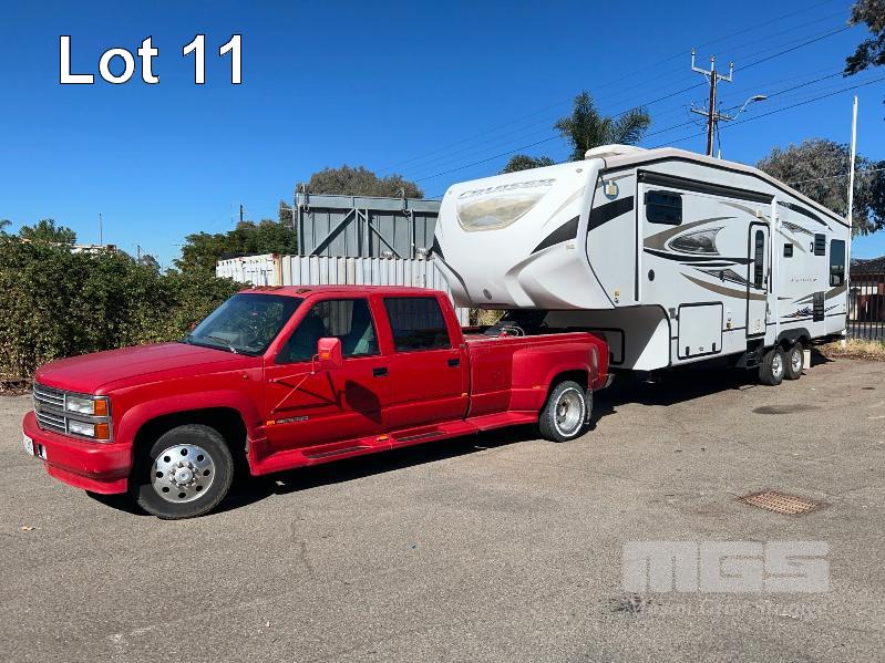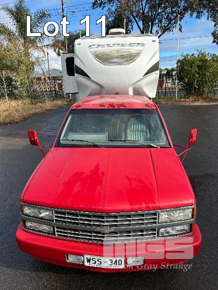 2012 CROSS ROAD CRUISER CARAVAN MOD: CF300CK TANDEM AXLE, FIFTH WHEELER, 32Ft REG: SY 67 CK VIN: 4V0FC3022CE010370 3 x SLIDE OUT EXPANSION UNITS, FEATURING MASTER BEDROOM WITH ENSUITE, LOUNGE AREA WITH SOFA BED & 2 x RECLINERS, DINING SUITE TO SEAT 4, ISLAND KITCHEN BENCH WITH TWIN SINKS, STOVE & OVEN, SLIDE OUT PANTRY, DOMETIC 3 WAY FRIDGE, 2 x AIRCONDITIONING UNITS, ROOF MOUNT, SOLAR POWER SYSTEM, POWER AWNING & GAS HOT WATER UNIT WITH TOW VEHICLE 1993 CHEVROLET SILVERADO 3500 PICK UP TRUCK REG: WSS 340 VIN: 1GCHC33F4PJ363353 ENG: YRK081606 ODO: 482,476kms DUAL REAR WHEELS, ALISON AUTO TRANSMISSION V8 TURBO DIESEL ENGINE FITTED WITH TRAY MOUNT FUEL TANK, 500 LITRE ALCOA MAGS WITH 1 x KEY KEY #59