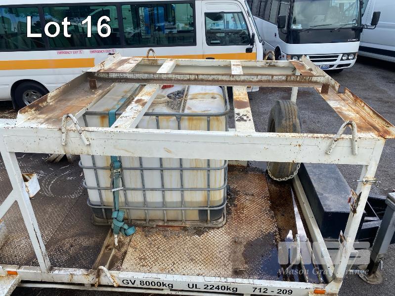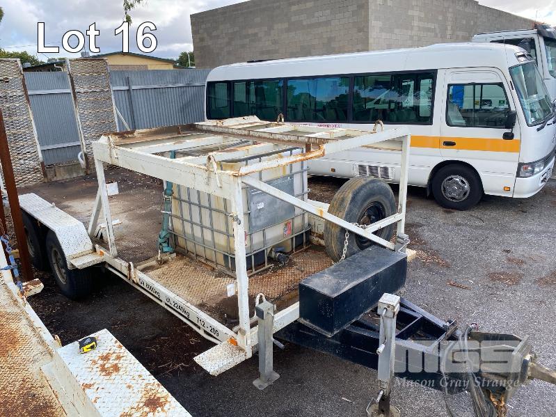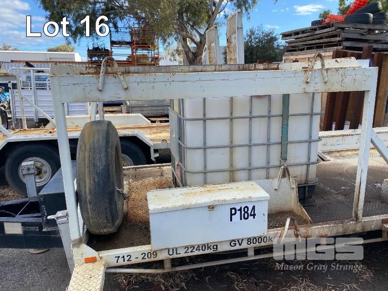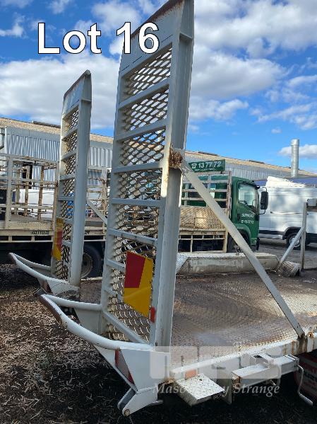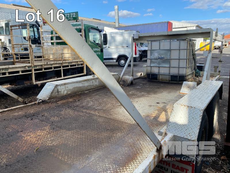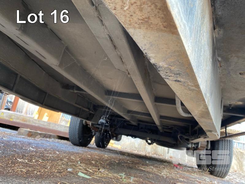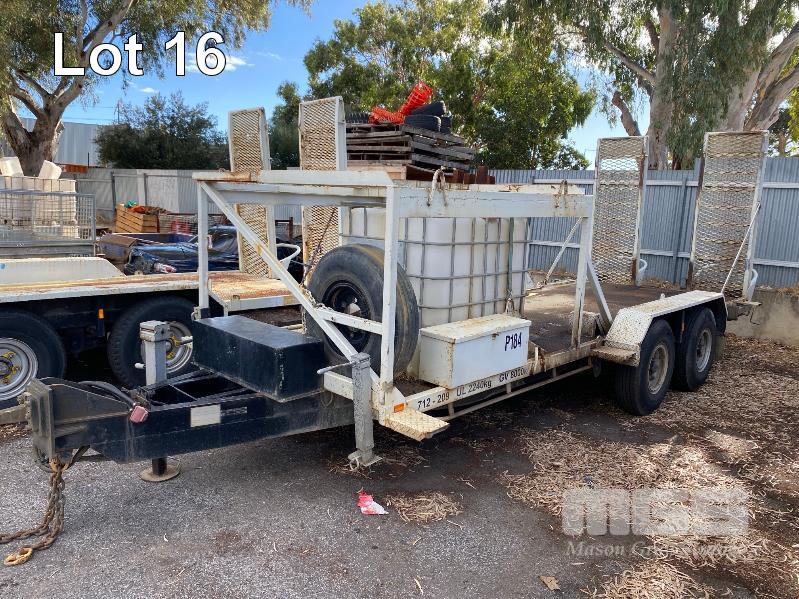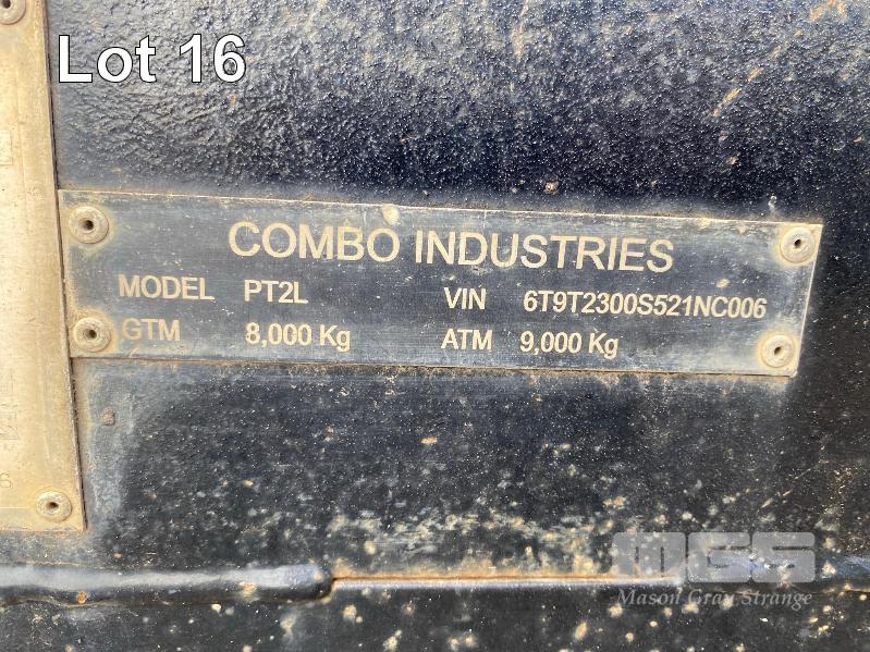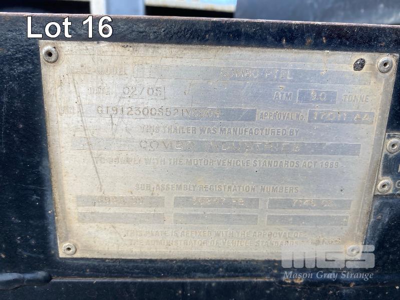 2005 COMBO INDUSTRIES 20' TANDEM AXLE PLANT TRAILER MODEL: COMBO PT2L REG: YS 99 DE (NHV) VIN / CHASSIS: 6TNT2300S521NC006 ATM: 9,000kg SPRING SUSPENSION, 8.25R 15TR, DRUM AIR BRAKES, RING FEEDER HITCH HYDRAULIC LIFT REAR LOADING RAMPS FRONT MOUNT 12V HYDRAULIC PUMP CHECKER PLATE STEEL DECK SIZE: 6100 x 1900mm FITTED WITH OVERHEAD CARRY RACK, SIZE: 2100 x 1900 x 1120mm (H) FRONT & REAR MOUNT ADJUSTABLE SUPPORT LEGS SIDE MOUNT TOOL BOX REVERSE CAMERA 2 x SPARE WHEELS GTM: 8,000kg