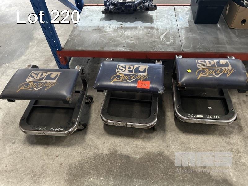 3 x MECHANICS MOBILE STOOLS, SPC RACING