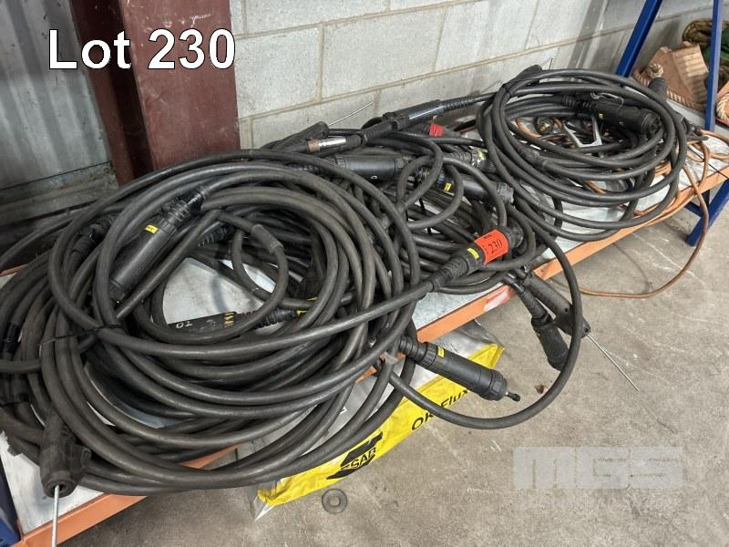 MIG WELDING LEADS & HAND PIECES INCLUDING CIGWELD & ESAB, ASSORTED TYPES WITH EARTH CABLES & CLAMPS