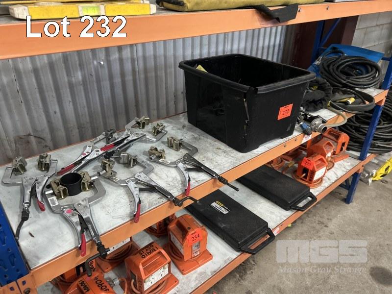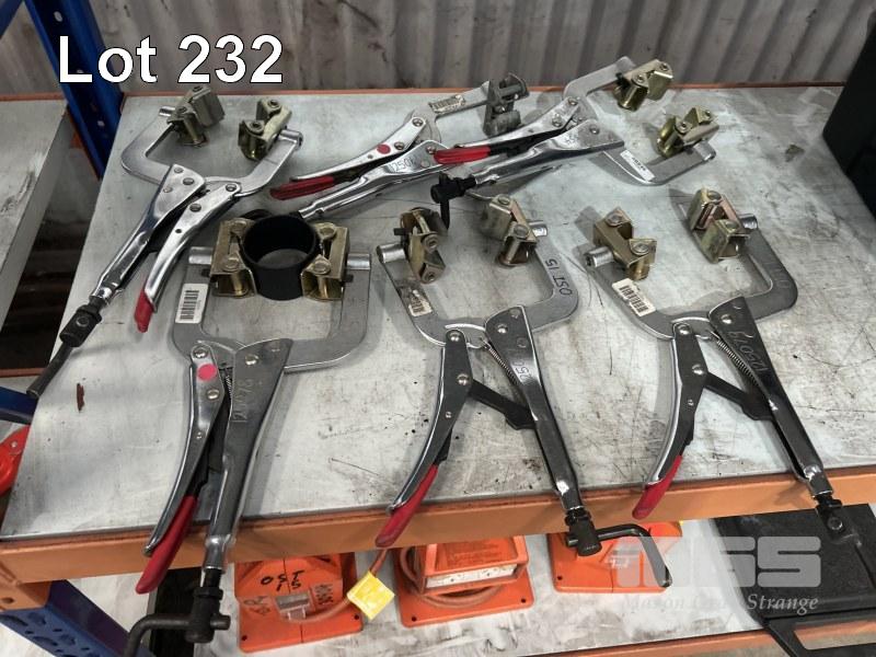 6 x VICE GRIP CLAMPS WITH WELDING LEADS, HAND PIECES & ATTACHMENTS,