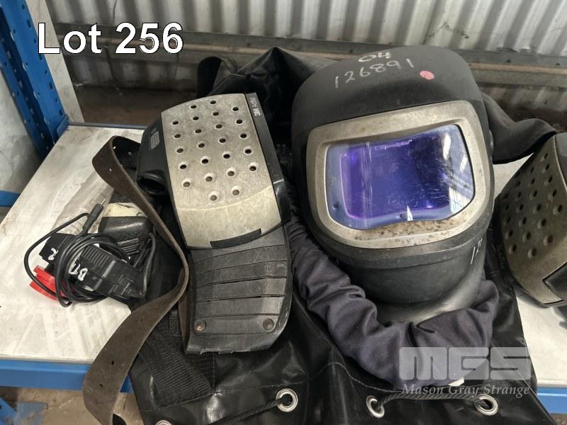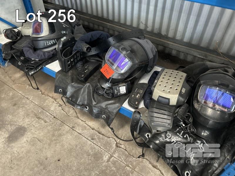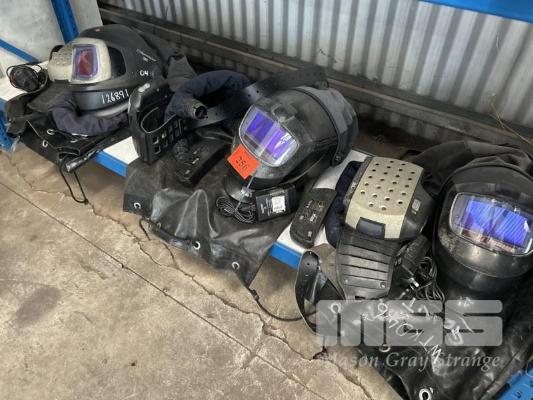 3 x POSITIVE AIR FLOW WELDING HELMETS, 3M ADFLO SPEED GLASS INCLUDING FAN PACKS, BATTERIES & CHARGERS