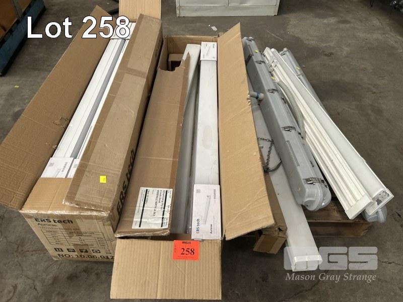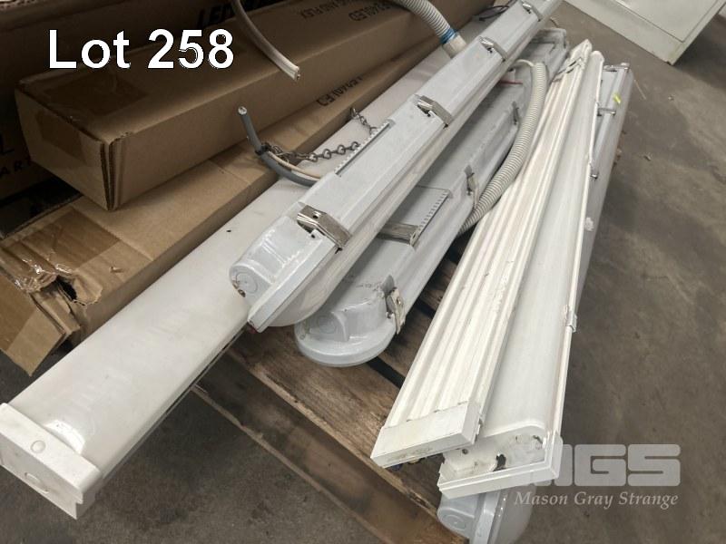 54w, 240V, AS NEW WITH ASSORTED LED LIGHT FIXTURES,