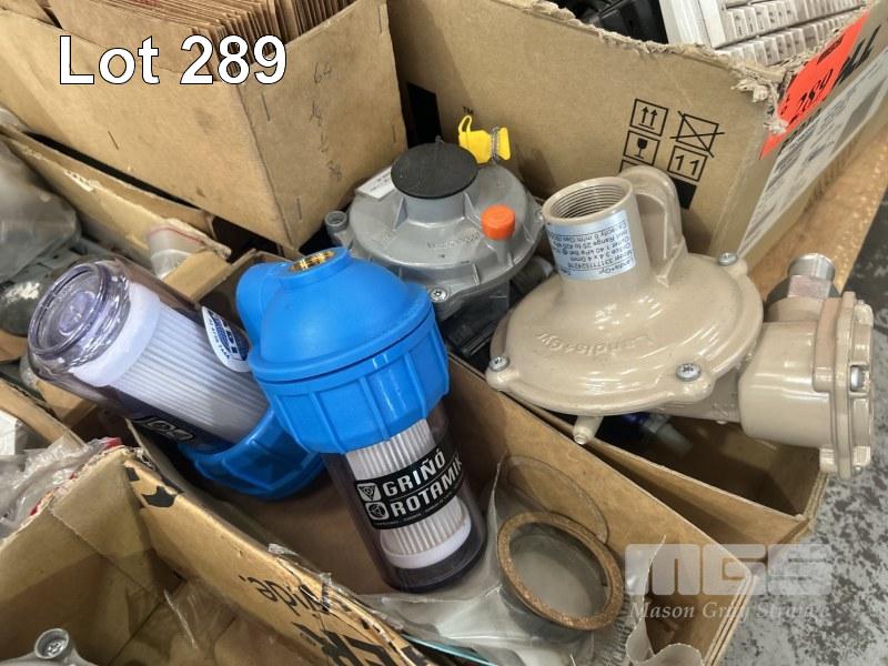 GAS REGULATOR, ASSORTED TYPES, GRINGO ROTAMIX FILTER UNITS, CONNECTORS, COUPLERS, BUTTERFLY VALVE, 3", KEY SWITCH UNITS, ETC